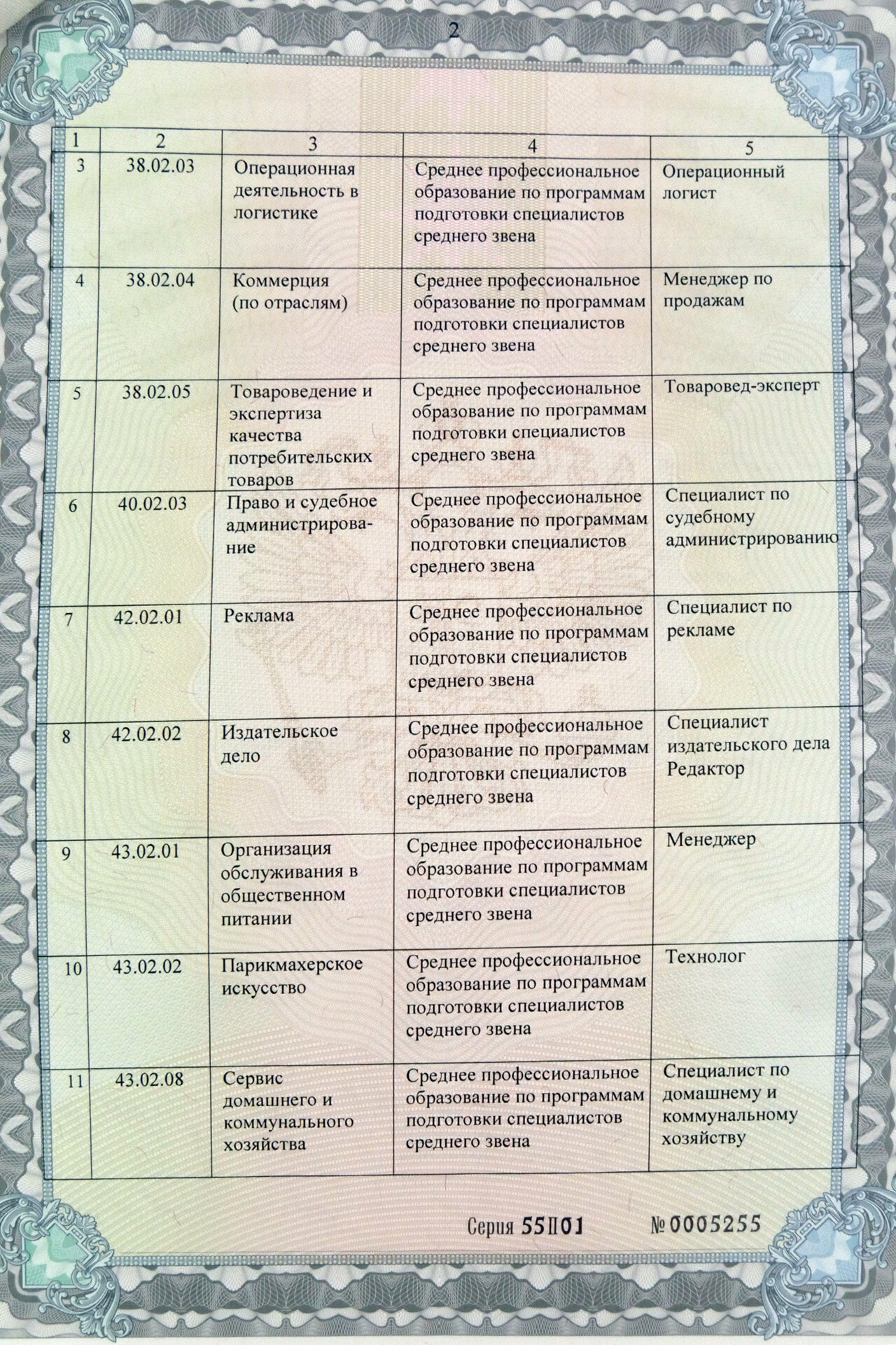 Диплом об образовании: государственный диплом о среднем профессиональном образовании, установленный Министерством образования и науки Российской Федерации
